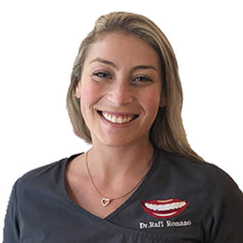 רופאת שיניים, בוגרת הפקולטה לרפואת שיניים באוניברסיטת תל אביב שנת 2020. עוסקת בהדרכת סטודנטים ללימודי רפואת שיניים ומרצה בתוכנית ההכשרה ללימודי שיננות באוניברסיטת תל אביב. במרפאה, מבצעת הדבקת ״Attachments״ לקשתיות שקופות, הורדת מכשור קבוע, קיבועים, הסברים על תוכניות הטיפול למטופלים ועוד. בנוסף, עוסקת במספר מחקרים הקשורים בשכיחות הופעת הפרעות טמפורומנדיבולריות, בין היתר אצל מטופלים עם ליקויי סגר חמורים העומדים בפני ניתוח אורתוגנטי. info@drromano.com