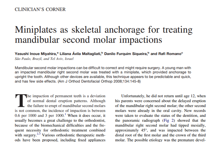 Miniplates as skeletal anchorage for treating mandibular second molar impactions.