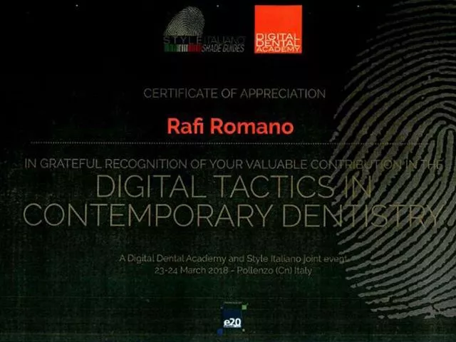 Dr. Rafi Romano is a specialist in orthodontics and dentofacial orthopaedics, earned at The Dental Faculty, Hebrew University, Hadassah Jerusalem.
